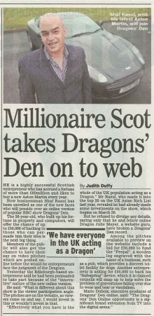Read MoreMillionaire Scot takes Dragons’ Den on to webIn The News